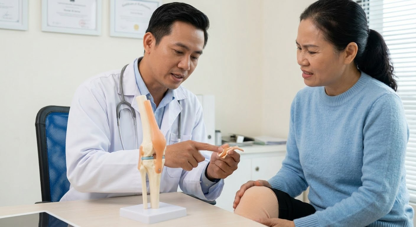 Đau nhức xương khớp thường gặp ở người mắc các bệnh như thoái hóa khớp, viêm khớp dạng thấp, gout và một số bệnh lý cơ xương khớp mạn tính khác. Với những trường hợp này, điều quan trọng trước hết không phải chỉ là giảm đau tức thời mà là kiểm soát ổn định bệnh lý nền theo đúng phác đồ điều trị của bác sĩ.