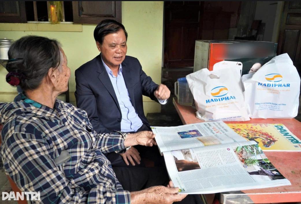 Qua sự kết nối của đại diện báo Dân trí tại Hà Tĩnh, Thầy thuốc nhân dân Lê Hồng Phúc đã trao những phần quà Tết với tổng trị giá 5 triệu đồng tới bà Lê Thị Nhị, cựu nữ thanh niên xung phong.